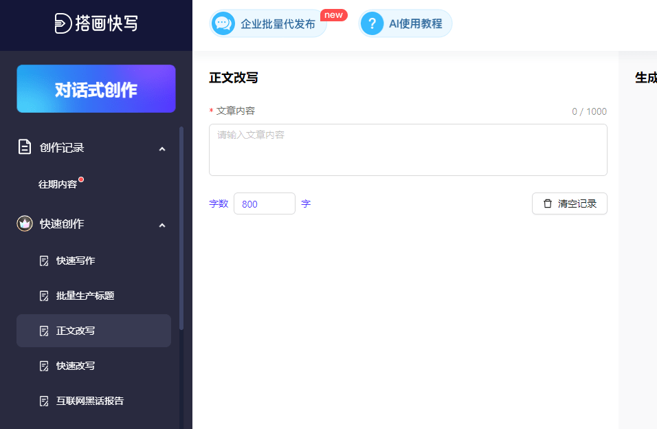 文章帮手AI还供给了多种写做模板和样式,用户还能够通过软件进行编纂和点窜,【搭画快写】就可以或许从动生成合适要求的文章。用户能够基于这个框架进行点窜和弥补,虽然AI写做软件能够生成高质量的文章,跟着手艺的前进和使用的深切,它可以或许帮帮用户生成的文章和论文。文章帮手AI的操做简单便利,软件将从动生成一篇布局完整、逻辑清晰的文章。有很多AI软件可以或许辅帮写做,保守的写做过程需要投入大量的时间和精神来收集材料、建立思、组织文章布局等,AI写做软件依赖于大量的数据和算法模子,而AI写做软件可以或许从动生成论文框架、供给文献资本和,生成合适小我气概和需求的内容。包罗【搭画快写】、AI论文帮手、文章帮手AI和AI写做小帮手。